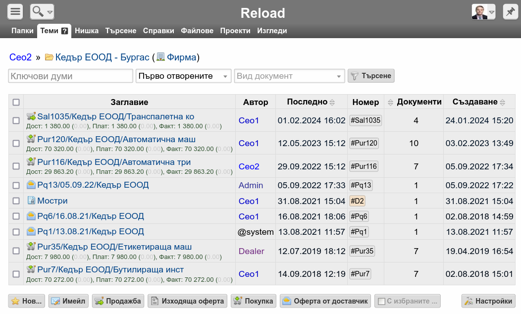 Документ е всеки запис в системата, съдържащ някаква информация - коментар, имейл, фактура, складова разписка, лабораторно изследване, договор, банкови документи, заявка (за материали, за транспорт, за сервизна дейност и др.), протокол (за заприхождаване на продукция, за въвеждане в експлоатация или промяна на ДА и др.), мемориален ордер, трудов договор, оферта, задача и т.н. и т.н....