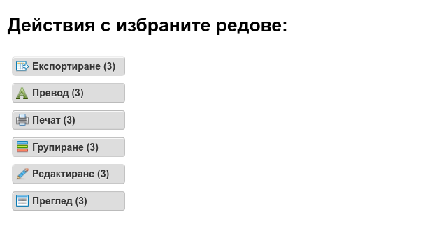 Бутон С избраните ... става активен и натискането му отваря екран за избор на действие, което да бъде извършено с маркираните записи:
